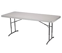 Lifetime 6 Foot Folding Table is constructed of high-density polyethylene and is stronger lighter and more durable than wood. Gray Hammertone 1-1/8" Round Folding Frame for easy storage when not in use. Table will not crack chip or peel and are built for indoor and outdoor use. The patented steel frame design provides a sturdy foundation and is protected with a powder coated weather resistant finish.
