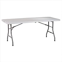 - Durable 8-foot folding table for indoor or outdoor use