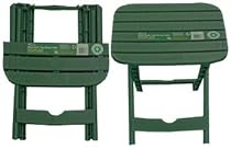 15.5 inches tall. Ideal for use beside chairs. Perfect as an end table on porches and decks. For snacks barbecues buffets tailgating and much more. Easy to tote to the beach sporting events or on a boat - great for college dorms. Table top dimensions: 12in x 14in. Makes a great plant stand indoors or out.