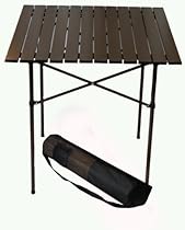 We are the maker of the perfect portable table that goes anywhere. This is a portable table for any indoor or outdoor activity. The collapsible tall aluminum table rolls up in seconds and fits into an easy carry bag. This unique compact and portable design offers the most convenient way to have a full-size table anywhere you want. Great to take to any indoor/outdoor adventures like picnics park camping lake river beach lawn concerts vacation use as portable game table or anywhere around the house. Comes with water resistant aluminum top 2 cross bars 4 legs and a mesh carrying bag with pocket. Set up size is 27 inches wide by 27 inches long by 27 inches high. Brown.