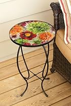 Reds oranges and pinks are not just surrounded by lush greenery in your garden bed. The Summer Splash Round Glass Table shows off these bright colors on the blooms of its table-top. With an embossed and painted glass top on a black painted metal frame this accent table is both durable and beautiful. A truly unique and colorful glass table!